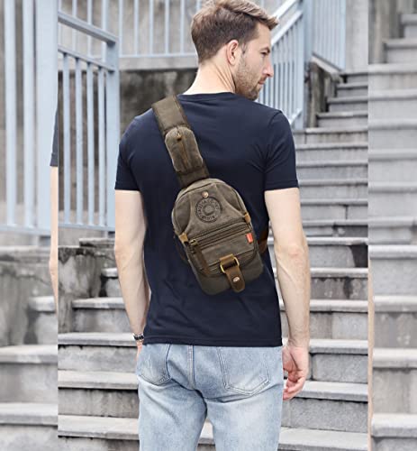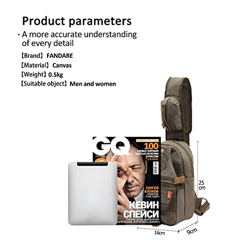 FANDARE Sling Bag Monospalla Zaino Spalla Borsa a Tracolla Borsello Marsupio Zainetto Chest Bag Scuola Uomo Donne Tela Army Green