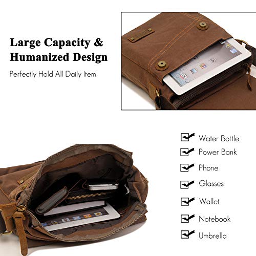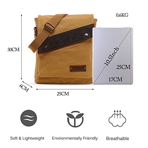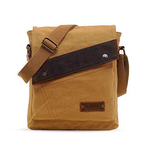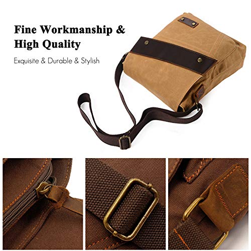 FANDARE Vintage Messenger Bag Briefcase Borsa a Tracolla Borsa Crossbody Scuola Borsa Zainetto Schoolbag Uomo Donna Tela Cachi