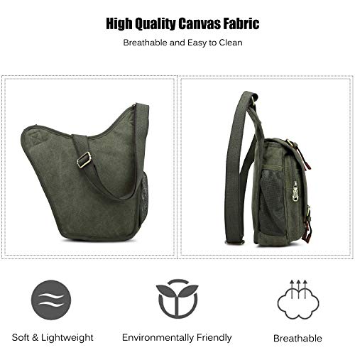 FANDARE Vintage Sling Bag Monospalla Zaino Spalla Borsa a Tracolla Crossbody Borsello Marsupio Piccolo Zainetto Scuola Universitari Uomo Donne Tela Verde