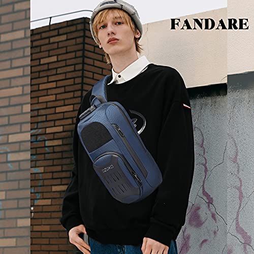 FANDARE Zaino Monospalla Uomo Zaino Spalla Sling Bag con Porta USB di Ricarica Borsello Borsa a Spalla Tracolla per Scuola Outdoor Ciclismo Viaggio Hiking Camping Crossbody Daypacks Blu