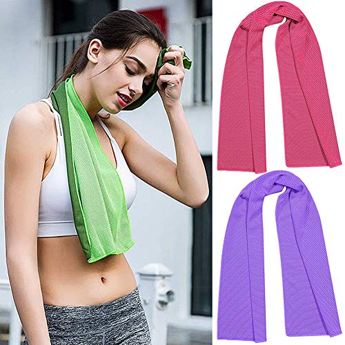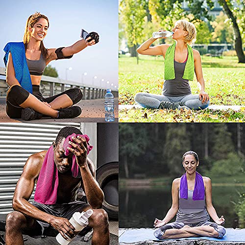 【4 Tovaglioli Di Raffreddamento Di Un Insieme】 Hanno 4 colori differenti (verde brillante, rosa rossa, viola, blu scuro), perfetti per tutta la famiglia per andare all'aperto fare esercitazione e portarlo a viaggiare.