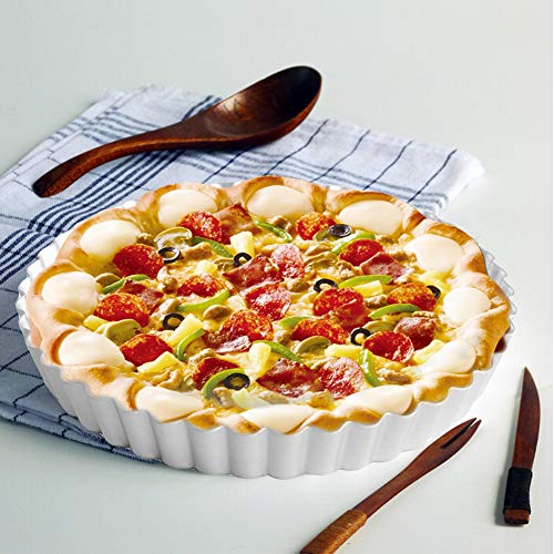 Design durevole e affidabile: I lati scanalati della quiche aumentano la superficie, che a sua volta crea una crosta forte in grado di contenere e contenere gli ingredienti pesanti di una torta salata o di una crostata di frutta. Il rivestimento antiaderente e la base staccabile facilitano il rilascio e la pulizia.