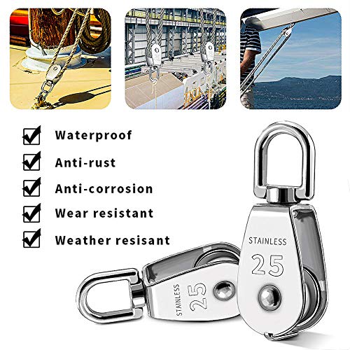【360 Gradi perno Squillare】2pz M25 304 Puleggia blocco in acciaio inox con rotella girevole liscia, rotazione di 360 gradi per evitare che corda / cavo / filo si intrecciano per il tuo comodo utilizzo.