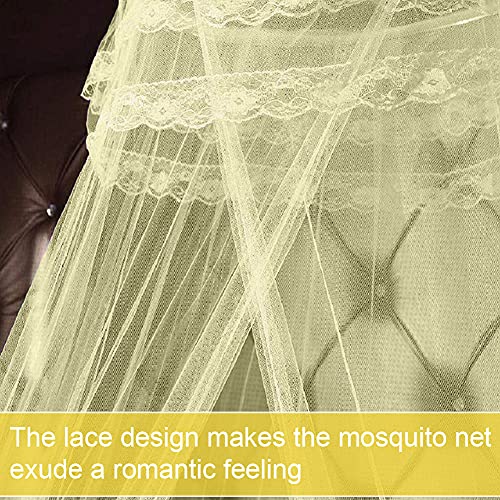 FANDE Zanzariera,Zanzariera Universale a Cupola,Facile Installazione, da Appendere, a Baldacchino,Installazione Rapida Facile, Zanzariera per Letti da Singolo a King Size (Giallo)