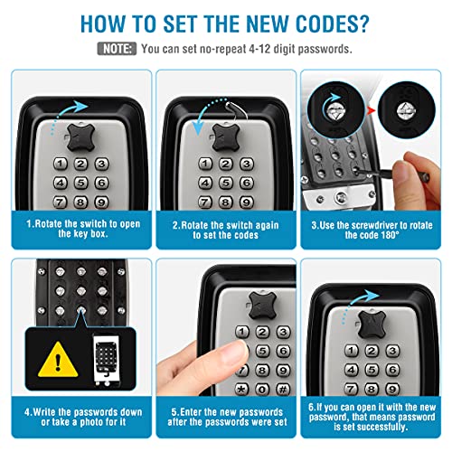 ▶FACILE DA INSTALLARE--Questa cassaforte per chiavi esterno è dotata di 4 viti e 4 tasselli di espansione in nylon per assicurare che Key Safe possa essere montato su qualsiasi superficie solida. La password reimpostabile a 12 cifre fornisce migliaia di combinazioni per garantire il massimo livello di sicurezza. Si co