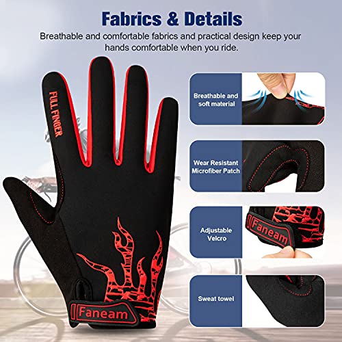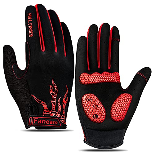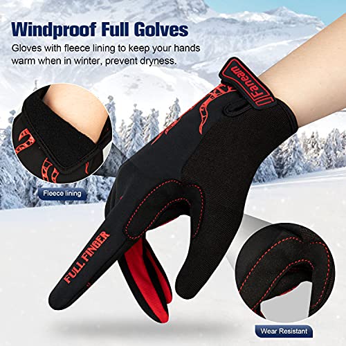 Faneam Guanti Ciclismo Invernali, Antiscivolo e Antiurto Guanti MTB Antivento Guanti Bici con Touchscreen e Gel Guanti Sportivi Mountain Bike per Uomo Donne per Corsa, Guida, Arrampicata (rosso M)