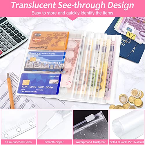 Faneam Raccoglitore Ad Anelli A6,47PCS Raccoglitore Pelle PU Raccoglitore con Buste Trasparenti a Cerniera,Fogli di Budget,Raccoglitore Soldi per Risparmi,Organizzatore di Buste Risparmio Denaro(Rosa)