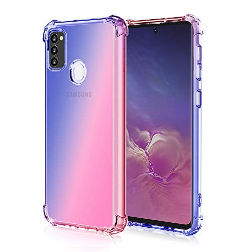 FANFO Custodia per Samsung Galaxy M21/M30S, Colore Sfumato Trasparente Ultra Sottile Anti Sbavature Morbida Antiurto TPU Flessibile Leggere Silicone Telefono Case Cover, Blu/Rosa