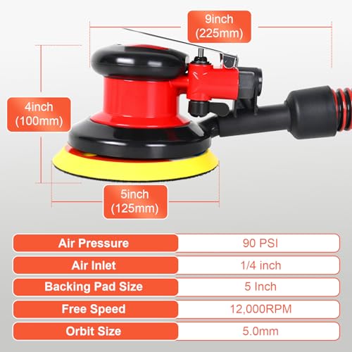 SI FANG 125 mm polvere aria casuale levigatrice orbitale auto industriale pneumatica lucidatrice con raccolta polvere e 10 dischi abrasivi, auto ceretta, ecc.