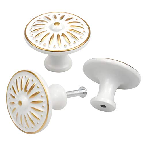 Fangehong 10 Pezzi Pomelli per Cassetti, Maniglia per Cassetto Porta, Vintage Pomello per Armadio a Foro Singolo, 35mm Manopole per Mobili Cassettiere Comò Credenze da Cucina, con Viti (Bianco)