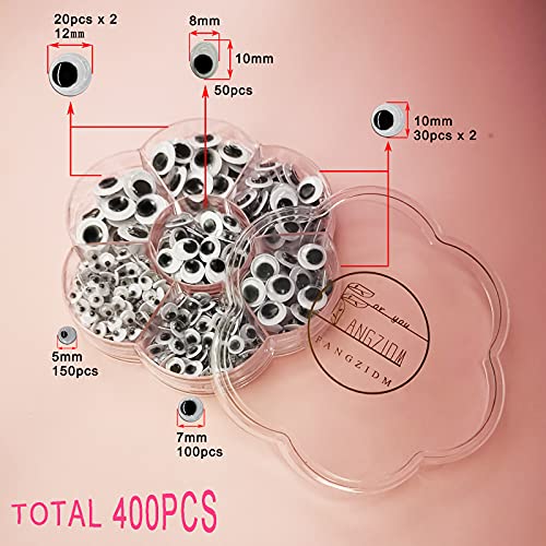 FANGZIDM 400 Pezzi Occhi Mobili Giocattolo Autoadesivi 5mm -12mm per Fai da te Scrapbooking Accessori