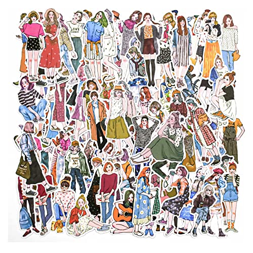 【Fashion Design】: Stickers vintage aesthetic l'aspetto adotta una varietà di immagini di cartoni animati di ragazze carine. Costume, pose e stili variano senza ripetizioni. Leggi un libro, vai in bicicletta, suona la chitarra, fai una passeggiata, pensa, sorridi, ecc. Amerai la creatività e le storie che ognuno ha/racconta! Ottimo accessorio per scrapbooking.