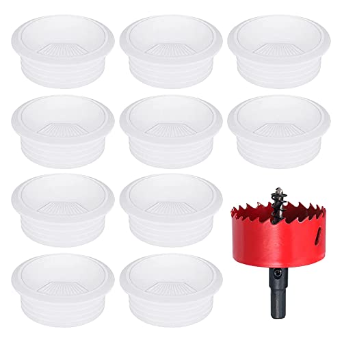 FANNAS Passacavi Scrivania, 10 Pezzi Ø 60mm Passacavi per Scrivania Rotondi Bianco, Pressacavo Tappo Passacavi Rotondi con 1 Sega a Tazza, per Tavoli, Scrivanie, Pareti, Ufficio, Casa