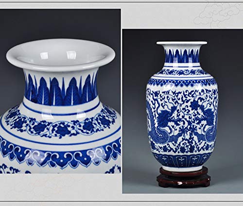 Fanquare Vaso di Fiori in Porcellana Bianca e Blu di Jingdezhen, Piccolo Vaso di Ceramica a Forma di Drago Fatto a Mano, Vaso Decorativo, Altezza 30cm