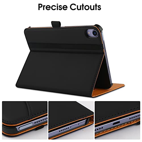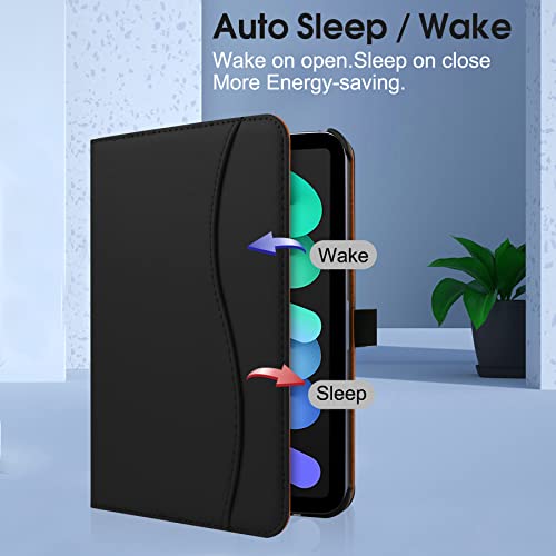 FANRTE Custodia protettiva per iPad Mini 6 8,3" 2021 (6a generazione Mini, A2567 A2568 A2569), custodia protettiva multi-angolo, con tasca frontale e Auto Sveglia/Sonno(Nero)