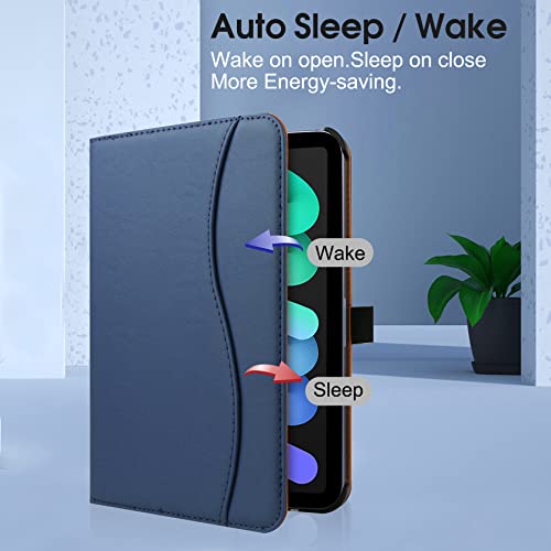 FANRTE Custodia protettiva per iPad Mini 6 8,3" 2021 (6a generazione Mini, A2567 A2568 A2569), custodia protettiva multi-angolo, con tasca frontale e Auto Sveglia/Sonno((Blu scuro))