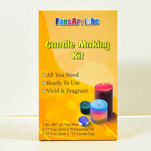 FansArriche Kit per Candele, Forniture per la Produzione di Candele, Kit di Arti e Mestieri Fai-da-te Regalo per Principianti, Adulti, Con Cera di Soia Da 2lb, Tintura A 12 Colori, Stoppino