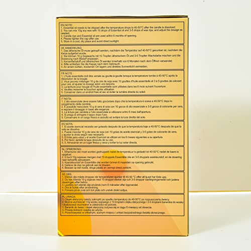 Facile da realizzare per i principianti: questo set per la produzione di candele ti consente di realizzare facilmente le tue candele fai-da-te. Le nostre forniture per la produzione di candele sono adatte per adulti e artisti. Contiene 2 lb x cera di soia, 6 x oli profumati, 10 × liquido Candle Color, 2 x supporto in legno, 10 x stoppino. Confezioni regalo artigianali. 6 tipi di profumi sono molto adatti a tutti i tipi di emozioni e stati d'animo.