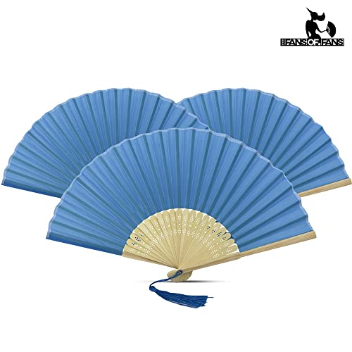 FANSOF.FANS Confezione da 10 ventagli in tessuto con nappe di grado A, in bambù, per feste e feste, colore: blu