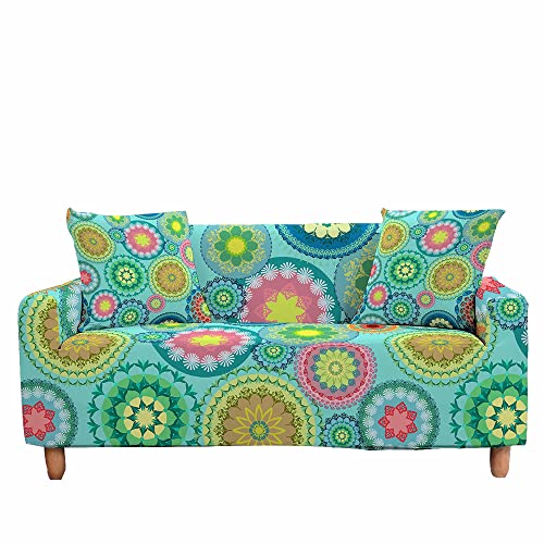 FANSU Copridivani Elastici 1 2 3 4 Posti,Copridivano Stampa Colorata Mandala 3D,Universale Copridivani con Braccioli,Poliestere Antiscivolo Copri Divano +1 Federe (blu verde,1 posto)