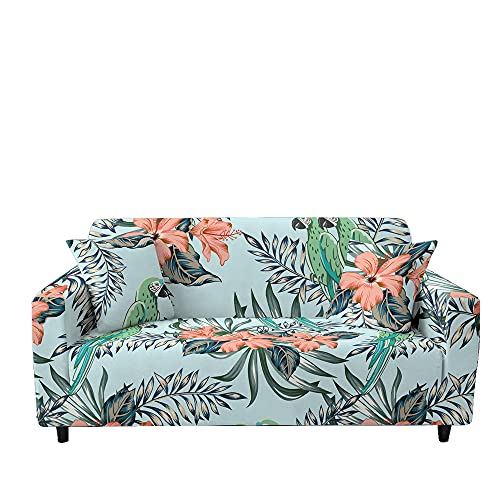 FANSU Copridivano Elasticizzato Universale Antiscivolo 1/2/3/4 Posti,Fodera per Divano con Piante Tropicali 3D,Poliestere Antiscivolo Copri Divano con Braccioli+1 Federe (Ibisco rosa,4 posti)