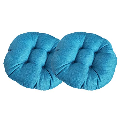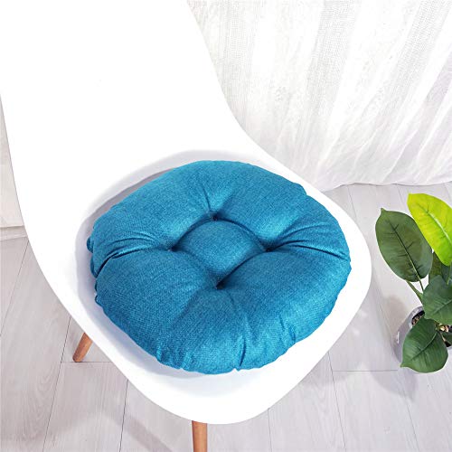 FANSU Set di 2 Cuscini per Sedie,Tinta Unita Rotondo Lino Tatami Cuscini per Sedie Morbido Spessa Confortevole per Cucina Sedie da Pranzo Soggiorno Giardino Patio Ufficio (Blu Pavone,50x50x9cm)