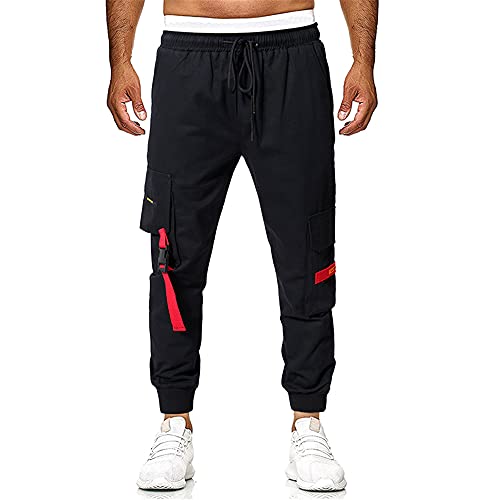 FANSU Pantaloni Cargo Uomo Slim Casual Sportivi Trekking Pants con Elastico Chino Coulisse Laterali Multi-Tasca Ragazzi Fitness Lunghi Trousers (Nero,2XL)