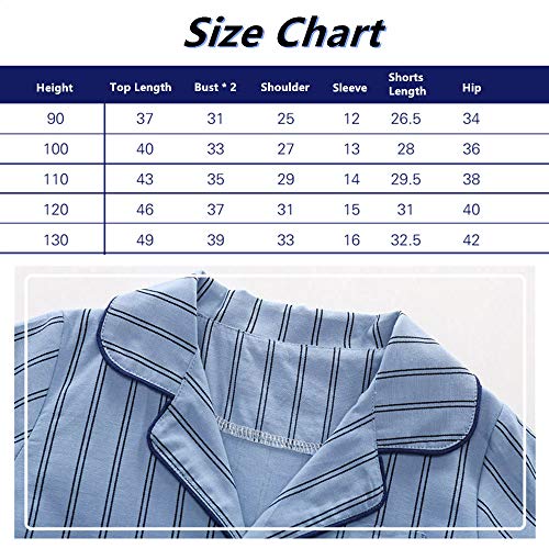 Fansu Pigiama Cotone Manica Corta per Bambino Due Pezzi Pigiami Set, Estivo Ragazzi e Ragazze Striscia Stampat Pigiami Abbigliamento Pantaloni Corti + T Shirt per 2-7 Anni (Striscia Blu,110cm)