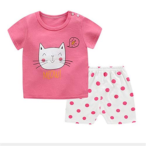 Fansu Pigiama Cotone Manica Corta per Bambino Due Pezzi Pigiami Set, Estivo Bambina e Ragazze Pigiami Abbigliamento Pantaloni Corti + T Shirt per 1-6 Anni (80cm,Gattino Rosso Rosa)