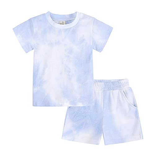 Fansu Pigiama Estivo Due Pezzi per Bambini, Pigiami Set in Cotone Manica Corta Moda per 1-8 Anni Ragazzi e Ragazze con Stampa Tie-Dye, 2 Pezzi Set Pigiami e Pantaloni (Azzurro,80 cm)