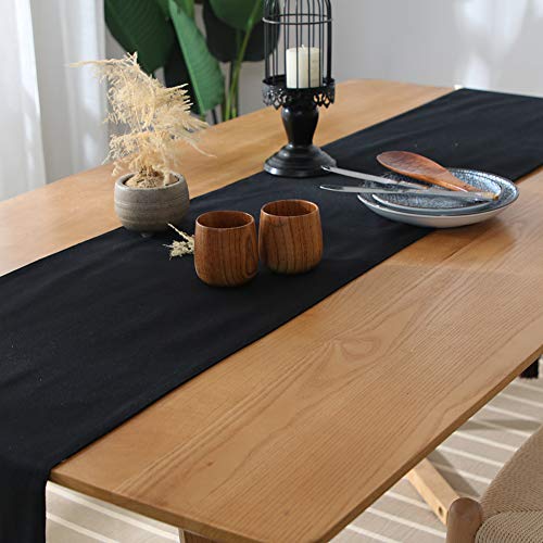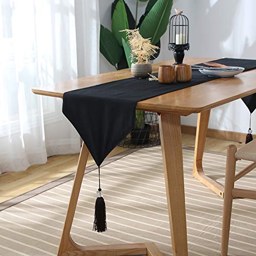 Fansu Runner da Tavola Moderno, Tinta Unita Fatto a Mano Cotone e Lino con Nappe Decorazione Nordico Semplice Classico per Tavolo Lungo Decorazioni per la Casa, Feste (33×180cm,Nero)