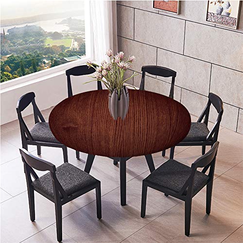 Fansu Tovaglia Rotonda Antimacchia, Tovaglie Con Bordo Elastica Antiscivolo Stampata In Legno 3D Impermeabile Tovaglia per Cucina Soggiorno Giardino Decorazione (Marrone,170cm)