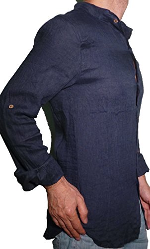 Fantasy Camicia Puro Lino Taglio Avvitato Slim Collo Coreana Manica Lunga Leggera Fresca Estiva Uomo Ragazzo (50, Blu)