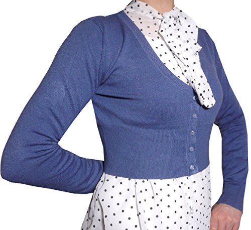 Fantasy Coprispalle Cardigan Corto Donna Aderente Lana Bottoni Giacchetto (S/M (40/42), Blu Jeans)