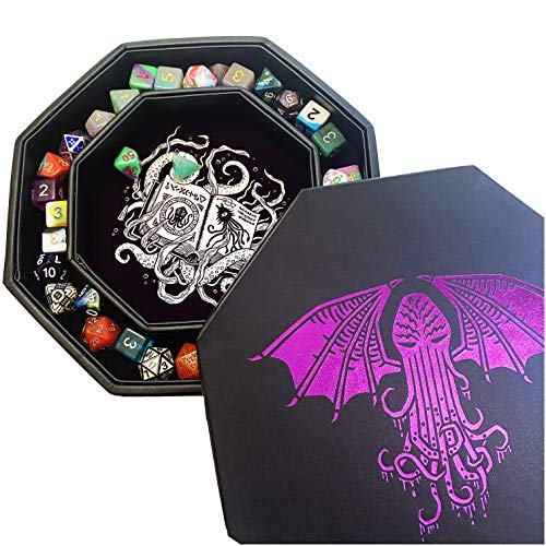 Fantasydice -Cthulhu Tome-Purpla Dice Vassoio - 20 cm Octagon con Lid and Dice Staging Area- Holds 5 Set (7 Dice Set/Standard) per tutti i Tabletop RPG Like D&D, Call of Cthulhu, Shadowrun.