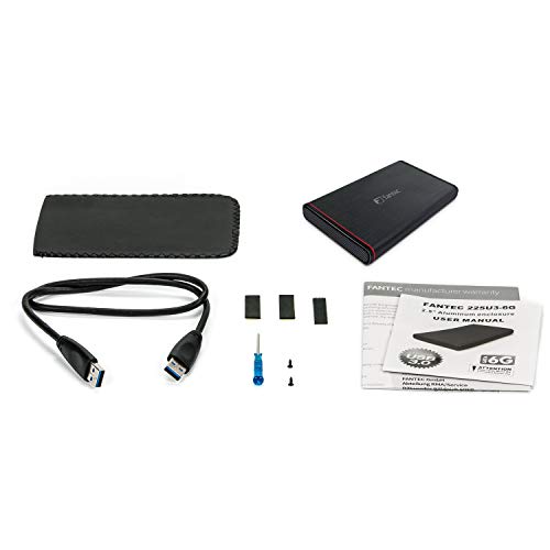 FANTEC 225U3-6G Case per Dischi Rigidi Esterni SATA I/II/III da 6,35cm (2,5") o SSD, Supporta SATA III 6G, USB 3.0 Superspeed, Alloggiamento in Alluminio, Nero