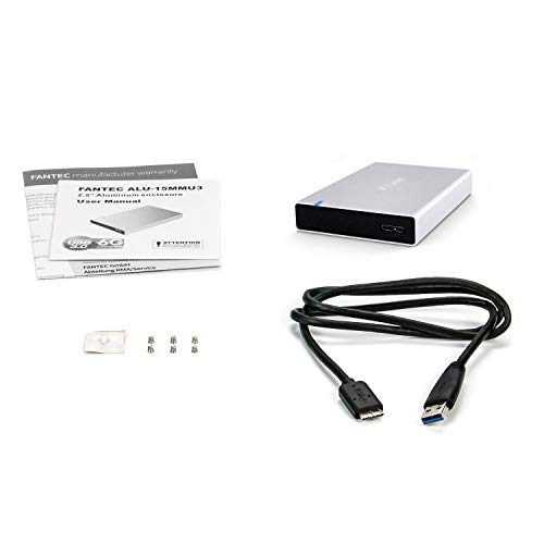 FANTEC ALU15MMU3 Box Case Esterno per Hard Disk o SSD SATA I/II/III da 6,35 cm (2,5 Pollici), supporto di 6G e UASP, Porta USB 3.0 SUPERSPEED, Case in Alluminio, Argento