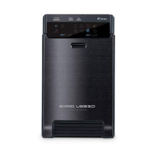 FANTEC QB-X2US3R Box Case Esterno per 2x Hard Disk SATA I/II/III da 8,89 cm (3,5 pollici), Porta USB 3.0, Funzione RAID (0/1/BIG) e JBOD, Ventola da 60 mm co Sensore Termico, Case in Alluminio, Nero