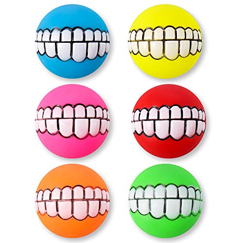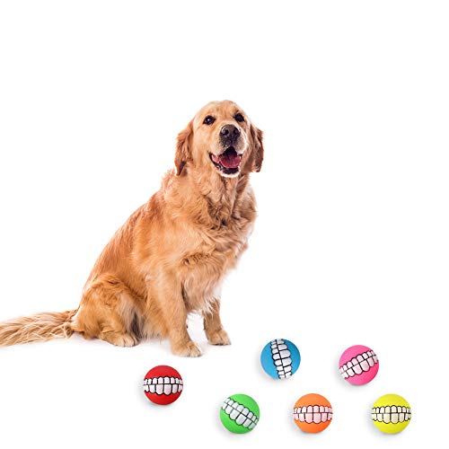 FANTESI 6 Pz Denti Palla per Cane, Divertente Giocattolo per Animali Domestici con Smile Umano Palla Denti Masticare Giocattolo Squeaker Suono Cane Cucciolo Giocattoli Giocattoli