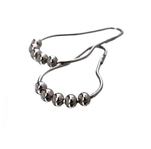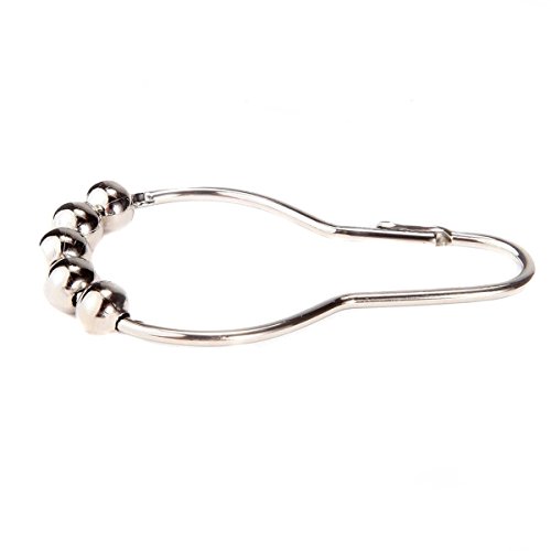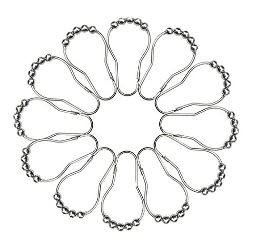Fanuk - Set di 12 ganci ad anello per tende da doccia, resistenti, in acciaio inossidabile, con sfere rotanti cromate lucide rotonda.