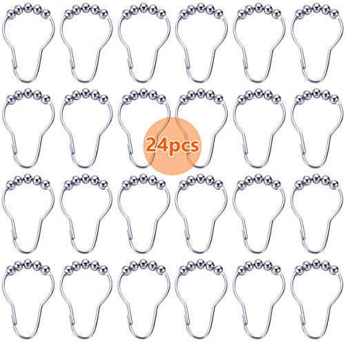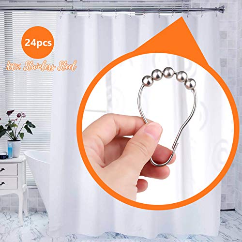 Fanuk - Set di 12 ganci ad anello per tende da doccia, resistenti, in acciaio inossidabile, con sfere rotanti cromate lucide Confezione da 24.