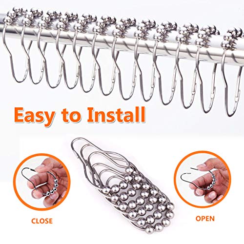 Design stente: Ganci per tende progettati con 5 rulli per consentire uno scorrimento facile e senza sforzo di tutte le tende da doccia, non consentire alla tenda da doccia di staccarsi accidentalmente durante l'uso con un gancio chiuso