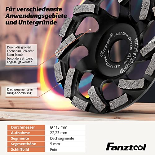 FANZTOOL, mola diamantata 125 x 22,2 mm, modello H, disco diamantato universale per smerigliatrice, platorello adatto per levigare cemento e grandi superfici
