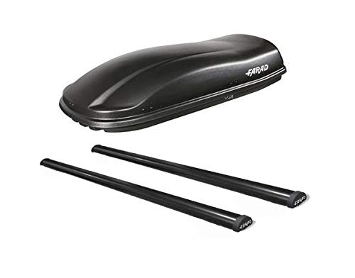 Farad HY85FFI30+AZ03030035 - Box da Tetto Marlin 480 LT Nero + Barre PORTATUTTO in Acciaio per Auto con Railing O Profili INTEGRATI