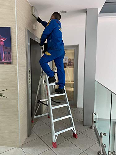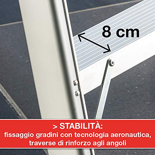 Scala in alluminio professionale con gradino da 8 cm ad alta resistenza