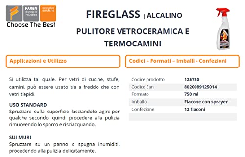 Faren FIREGLASS, Detergente Pulisci Vetro Camino e Stufa ad alta efficacia per Vetroceramica, Forni, Barbecue, Piani a induzione, Termocamini, 750 ml