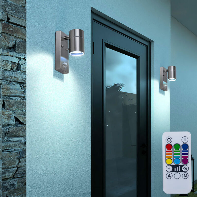 Descrizione Lampada da parete moderna in acciaio inossidabile Ottima fattura, aspetto elegante e finitura nobile: queste sono le caratteristiche di questa lampada di design. Indipendentemente dal fatto che si tratti di un balcone o di una terrazza, questo faretto in basso fa una bella figura ovunque L'apparecchio è progettato secondo la classe di protezione IP44 e realizzato in acciaio inossidabile. Questo lo rende resistente alla polvere e agli spruzzi d'acqua e quindi particolarmente adatto per l'uso esterno. Dotata di un rilevatore di movimento, questa lampada porta maggiore sicurezza alla tua casa . Il telecomando in dotazione può essere utilizzato per impostare la sorgente luminosa LED RGB in diversi colori e garantire così un'illuminazione d'atmosfera. Rispetto alle luci normali, i faretti a LED consumano una quantità minima di elettricità e hanno un consumo persino inferiore rispetto alle luci a risparmio energetico. Questo protegge l'ambiente e il tuo portafoglio. Una lampada