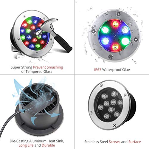 【16 colori e 4 modalità】 Le nostre luci di paesaggio RGB hanno 16 colori e 4 modalità: Flash / Strobe / Fade / Smooth. Con un telecomando, puoi cambiare ogni luce individualmente in diversi colori e modalità per decorare il tuo giardino e il tuo percorso