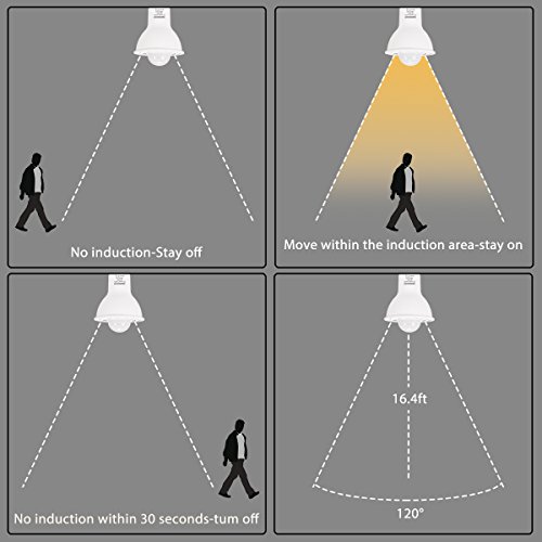 Sensor smart PIR: Questa lampadina a LED è dotata di sensore a infrarossi Motion PIR. quando il sensore del rivelatore è stato attivato da un oggetto che si muove attraverso il suo campo visivo, in particolare oggetti più caldi come persone, animali e automobili, accende automaticamente le luci e spegne le luci 30S più tardi a meno che non continui a percepire il movimento.
