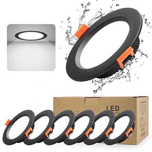 Faretti LED da Incasso per Cartongesso Nero (Set da 6), BAGZY Luci Ultrasottili da Soffitto e per l'illuminazione da Interno IP44, Bianco Freddo 6000K,700 Lumen,AC 220-240V,Foro Incasso 80-90mm